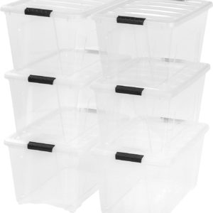 Home & KitchenIRIS USA 53 Qt. Plastic Storage Bin Tote Organizing Container with Durable Lid and Secure Latching Buckles, Stackable and Nestable, 6 Pack, clear with Black Buckle