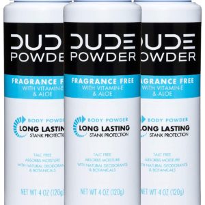 Beauty & Personal CareDUDE Body Powder, Fragrance Free 4 Ounce (3 Bottle Pack) Natural Deodorizers With Chamomile & Aloe, Talc Free Formula, Corn-Starch Based Daily Post-Shower Deodorizing Powder for Men