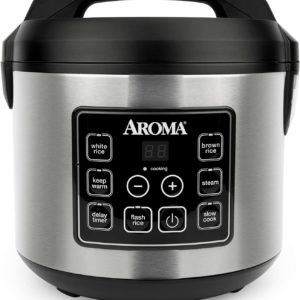 Home & KitchenAroma Housewares ARC-1120SBL SmartCarb Cool-Touch Stainless Steel Rice Multicooker Food Steamer, Slow Cooker with Non-Stick Inner Pot and Steam Tray, 20-Cup(cooked)/ 5Qt, Black