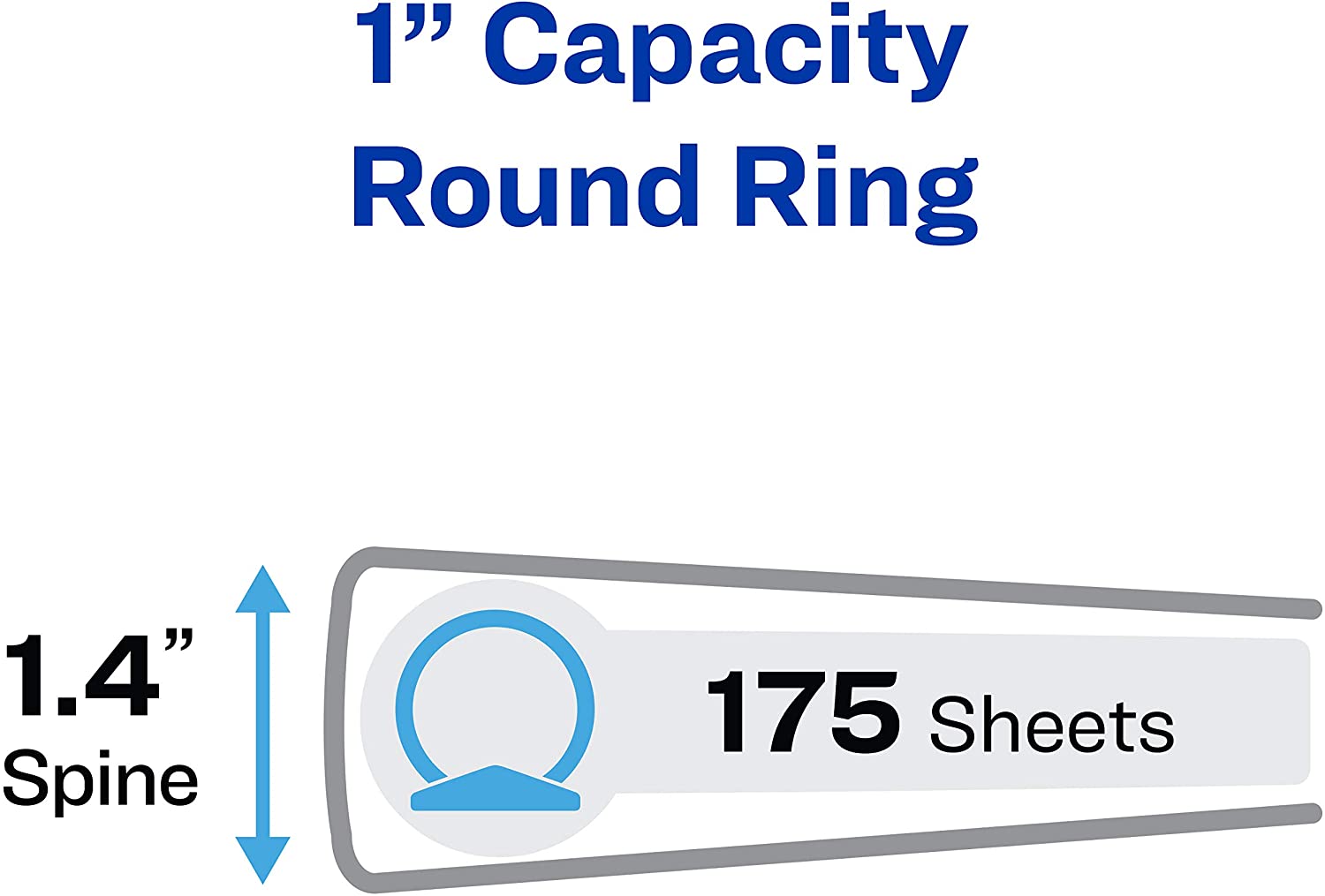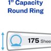 - Round ring binder holds 175 sheets with 1 inch capacity round ring