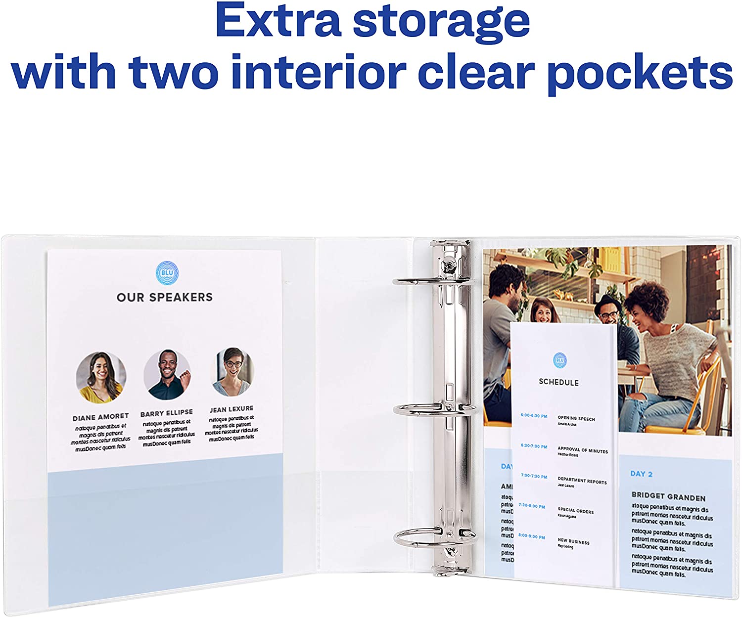 - Extra storage with 2 interior clear pockets; all Economy binders are made with nonstick PVC-free material—no ink transfer