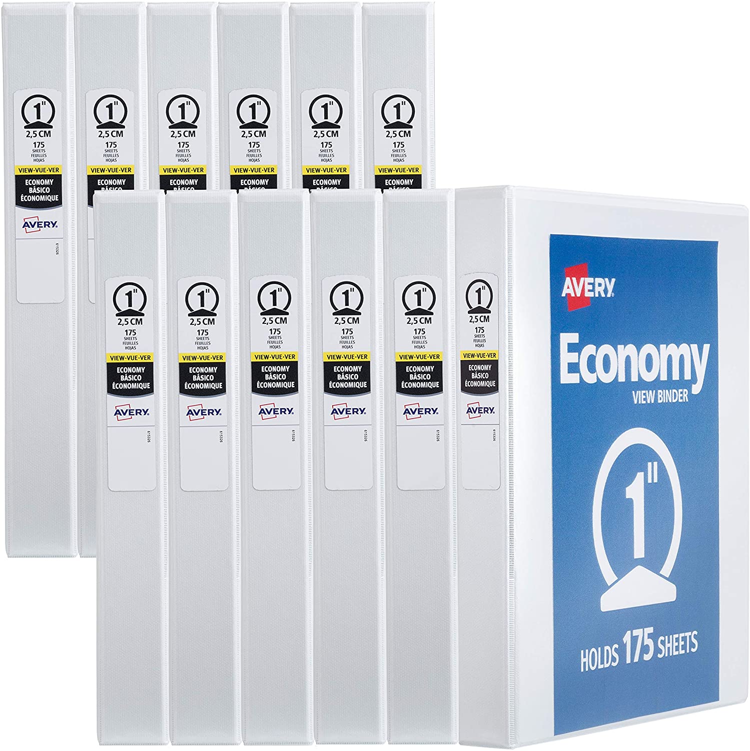 AVERY 1″ Economy View 3 Ring Binder, Round Ring, Holds 8.5″ x 11″ Paper, 12 White Binders (5711)