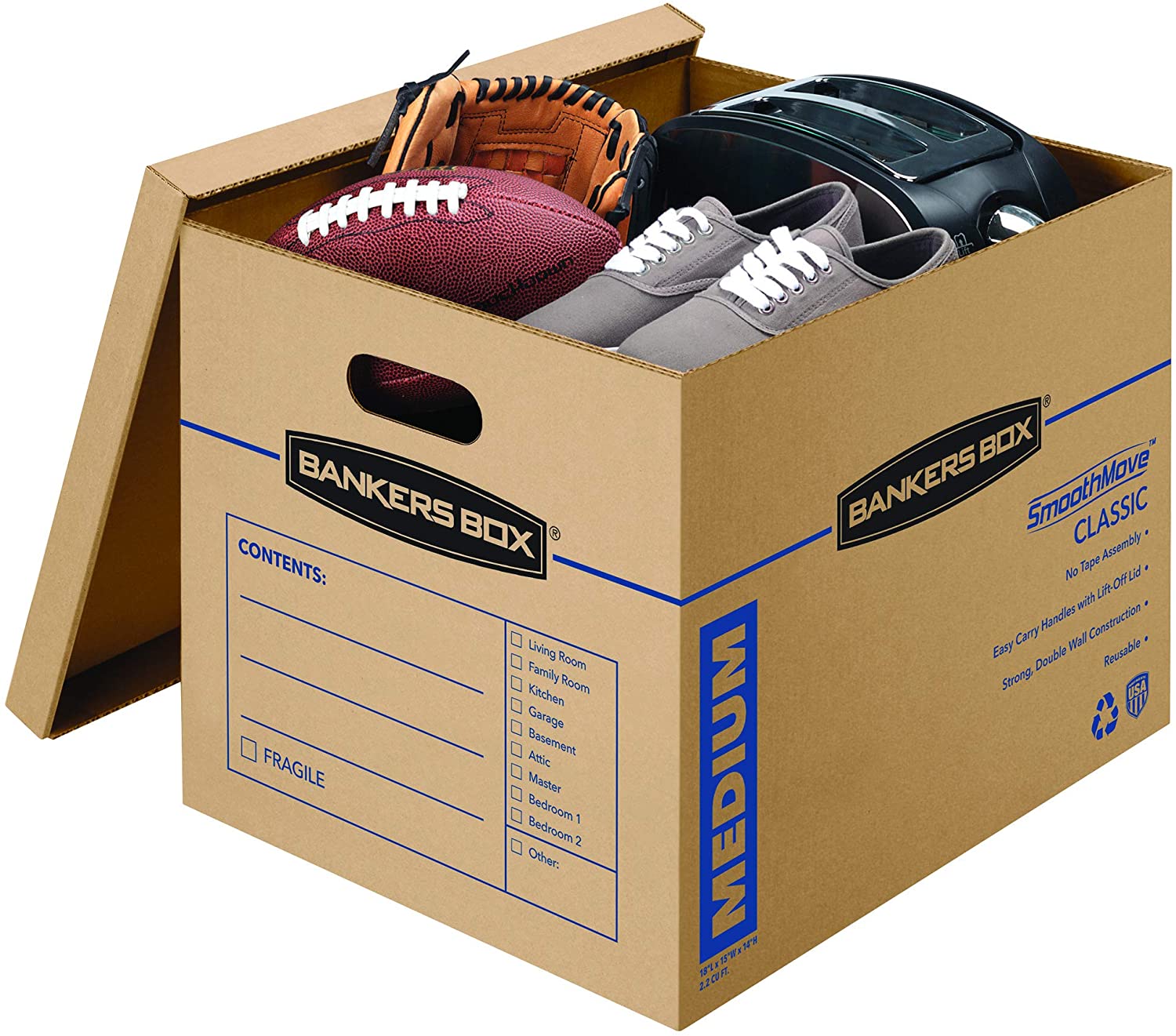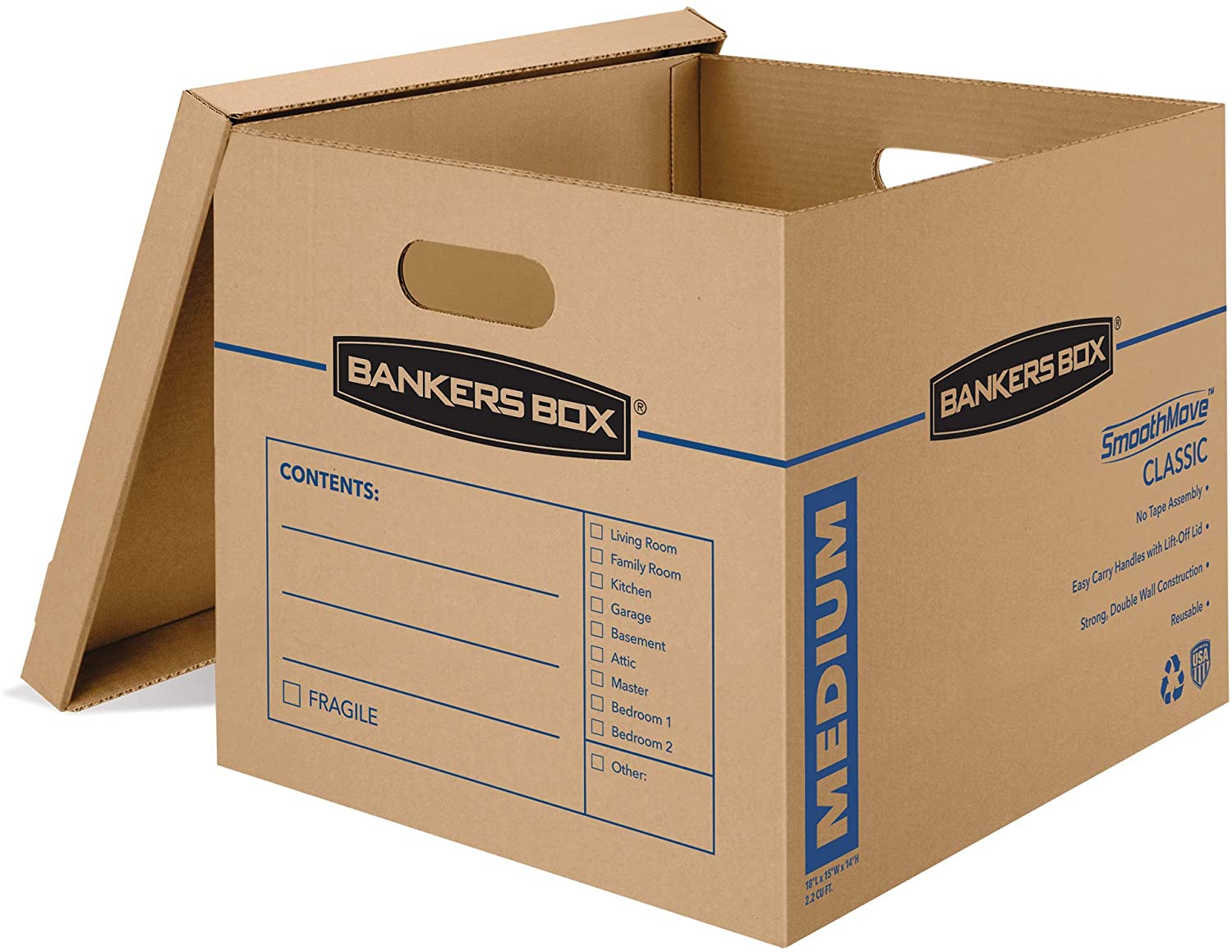 Bankers Box SmoothMove Classic Moving Boxes, Tape-Free Assembly, Easy Carry Handles, Medium, 18 x 15 x 14 Inches, 20 Pack (8817202)