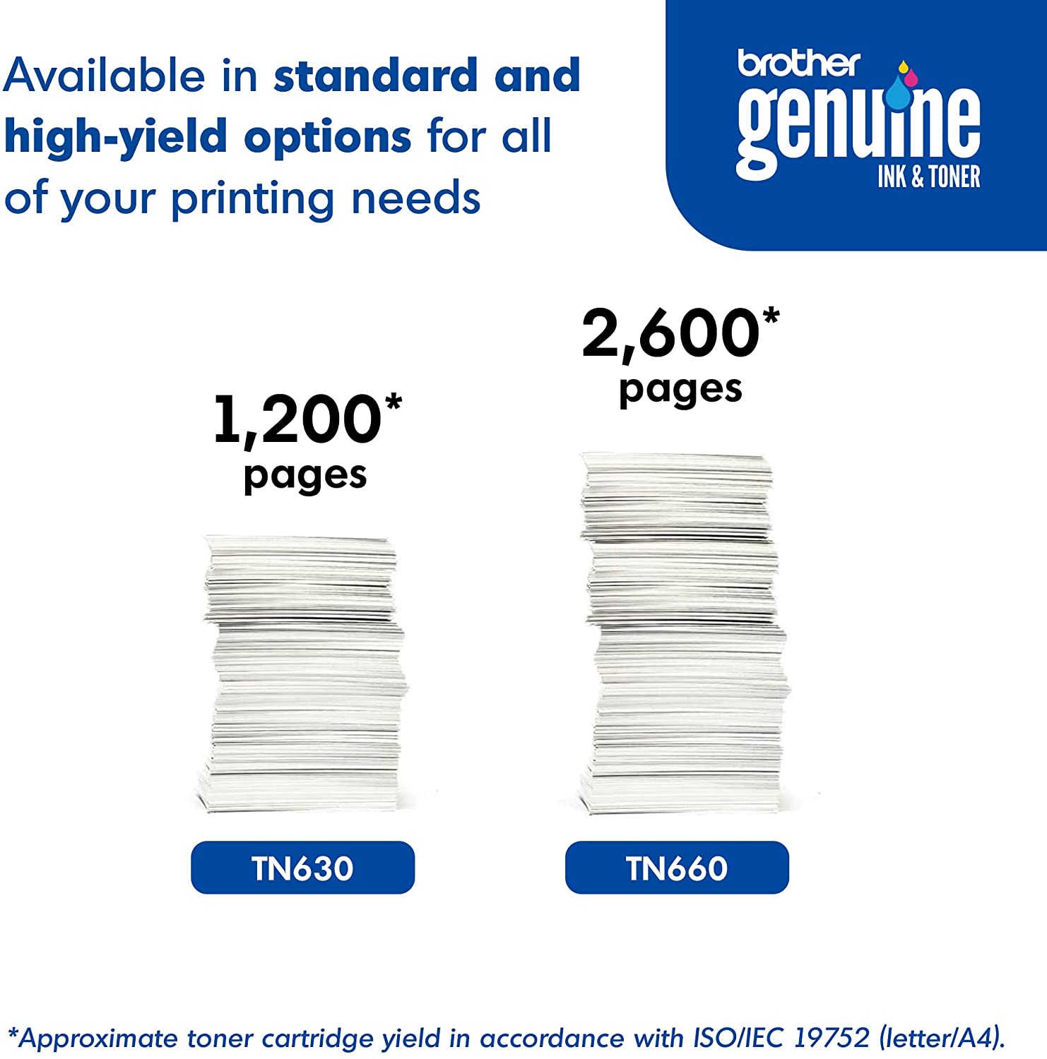 - BROTHER GENUINE CARTRIDGE – Brother TN-630 is a Brother Genuine cartridge that produces mono laser prints in high quality you can depend on.