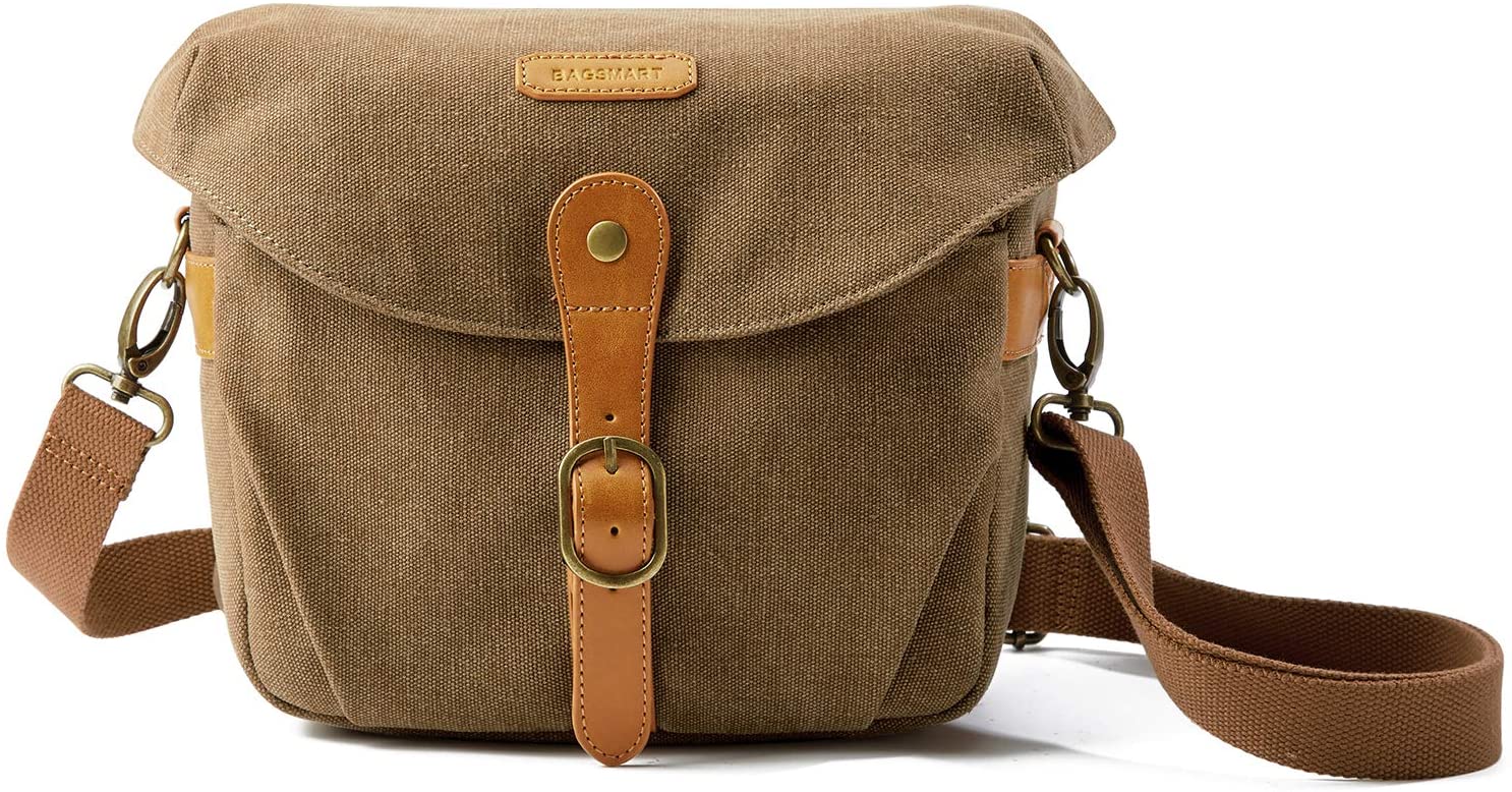 Camera Bag, BAGSMART SLR DSLR Canvas Camera Case, Vintage Padded Camera Shoulder Bag with Rain Cover for Women and Men, Khaki