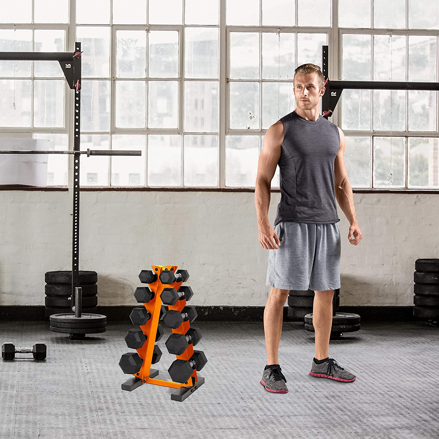 HOLDS 200 POUNDS – Designed to Hold 5 Pairs of CAP Hex or Rubber Hex Dumbbells Ranging From 5 to 25 Pounds; Mix and Match Your Dumbbells to Fit This Rack, Up to 35 Pounds; Some Combinations May Not Fit SPACE-SAVING DESIGON – Orange A Frame Design of This Rack Maximizes Floor Space by Storing Dumbbells in an “A” Shape, or Vertical Fashion; Easily Access and Store Dumbbells DURABLE AND RELIABLE – Finished with a durable orange powder coat and constructed of steel tubing, this rack will safely hold up to 200 pounds worth of dumbbells SPECS – 15” length x 13” width x 26” height; Rack weighs 10.5 pounds; 30 day manufacturer’s warranty; Assembly required; Includes rack only TRUST – Trust experience; CAP has been a pioneer in the fitness industry for over 30 years with locations worldwide; Chances are, if you have ever worked out before you have used a CAP product Sport Type: Weightlifting