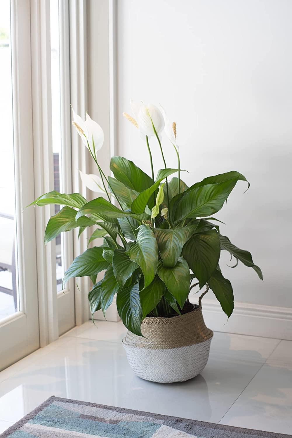 Being a tropical plant, peace lily prefers high levels of humidity. If the leaf edges turn brown, supply more humidity by grouping it with more houseplants. Height at shipping is approximately 24-inches tall, measured from the bottom of the pot to the top of the plant. Ships in a 10-inch diameter seagrass planter. Grow Peace Lily in bright, indirect sunlight for the best growth and enjoy! Water Peace Lily with approximately 2-3 cups of water about once a week. Adjust as needed for your environment. Air-purifying. Plants help filter harmful pollutants, such as benzene and formaldehyde, from indoor air.