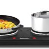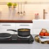 Elite Gourmet EDB-302BF Countertop Dual Flat Burner, Electric Hot Burner, Temperature Controls, Power Indicator Lights, Easy to Clean, 1500 Watts (Black)