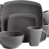 Gibson Soho Lounge 16-Piece Square Reactive Glaze Dinnerware Set, Grey – 97558.16RM