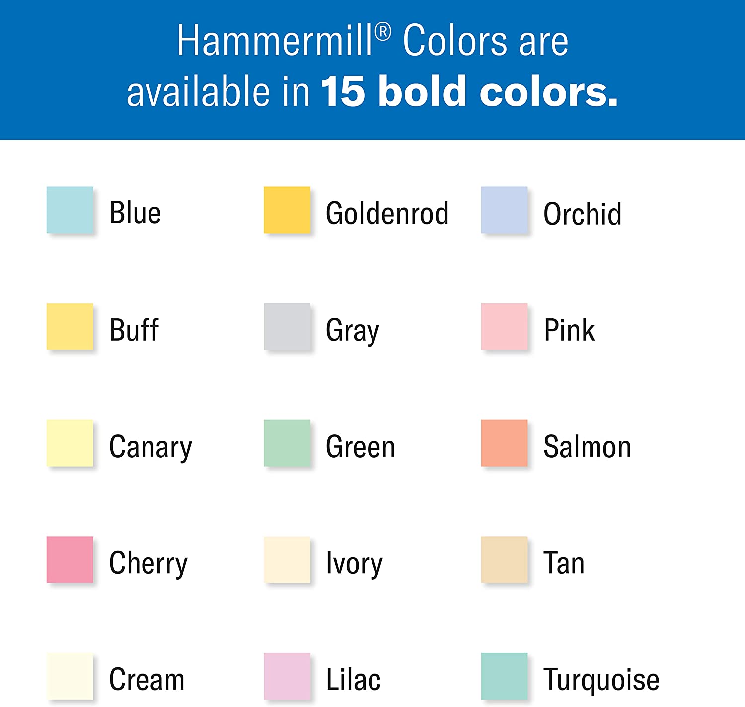 - SMOOTH SURFACE – Hammermill colored paper features a smooth, even surface with a high opacity for minimal show-through. It’s the ideal colored copy paper for newsletters, flyers, forms, school/art projects, color coding & more.
