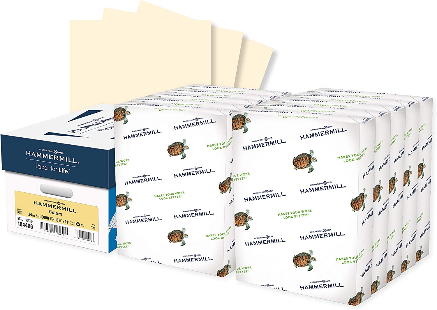 Hammermill Colored Paper, 24 lb Ivory Printer Paper, 8.5 x 11-10 Ream (5,000 Sheets) – Made in the USA, Pastel Paper, 104406C
