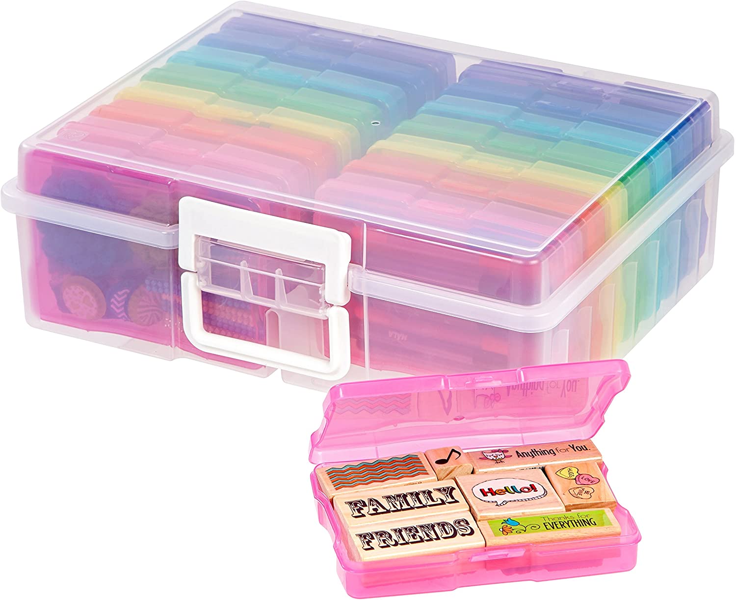 IRIS USA 4" x 6" Storage-16 Inner Keeper Organizer Cases Storage Containers Box for Photos, Multicolor- XL (2Pack), Multi-Color, 2 Count