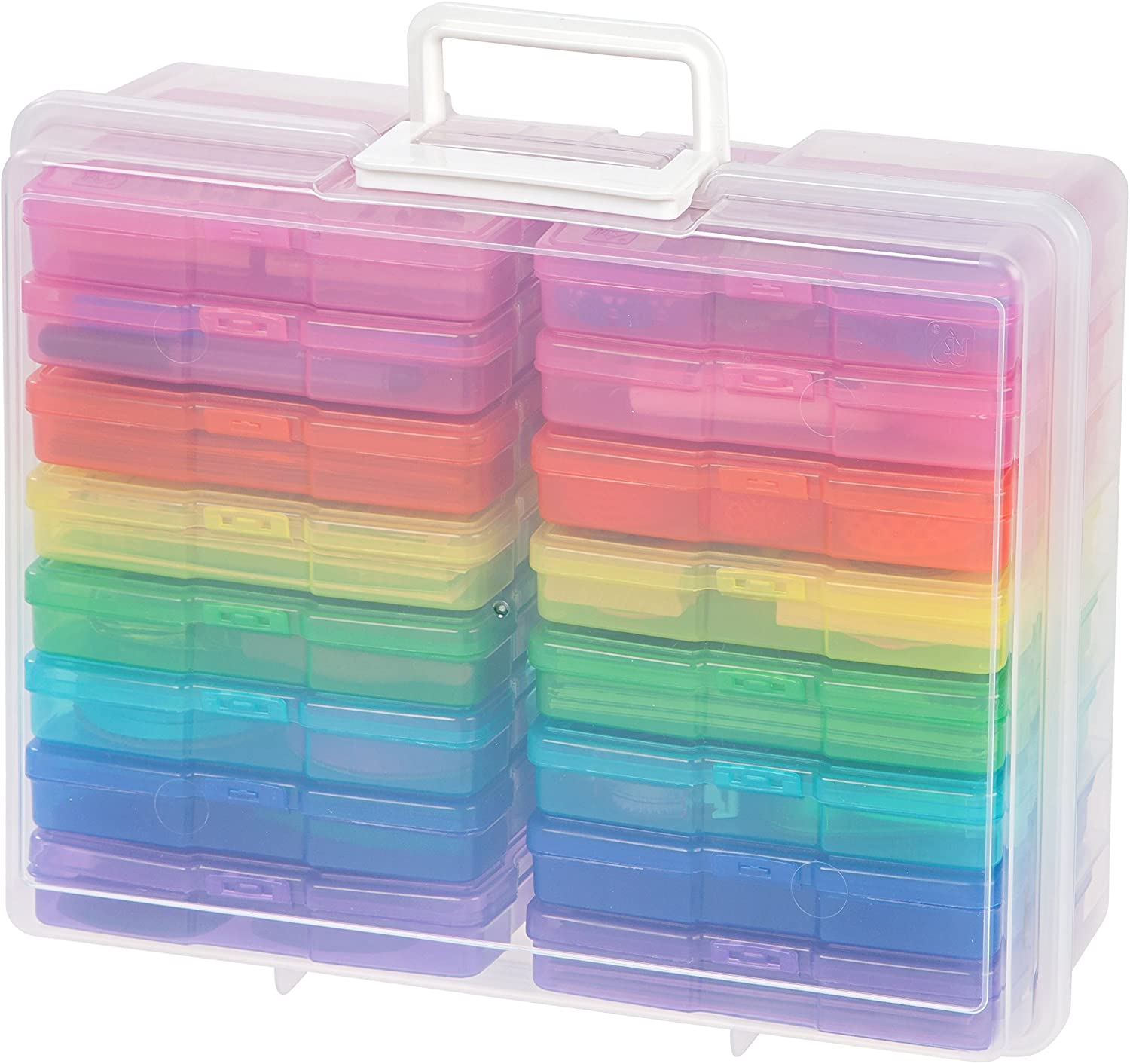 IRIS USA 4″ x 6″ Storage-16 Inner Keeper Organizer Cases Storage Containers Box for Photos, Multicolor- XL (2Pack), Multi-Color, 2 Count