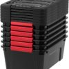 IRIS USA Plastic Storage Bin Tote Organizing Container with Durable Lid and Secure Latching Buckles, 12 Qt, 6 Count, Black & Red