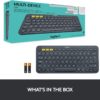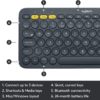 Multi-Device Connectivity : Pair up to 3 wireless devices at once with the simple touch of an Easy-Switch button. Easy-Switch lets you connect any Bluetooth device that supports an external keyboard, including an iPhone, iPad android tablet or Windows PC Small and Light : This lightweight, small-sized Bluetooth keyboard gives you full functionality within a minimalist layout. It takes up less space in your bag and at your desk, so you can take it wherever you need to type Extended Battery : Skip the hassle of frequently replacing batteries with up to 2 years life for this Bluetooth keyboard – depending on use Type on Anything : Enjoy desktop typing on a mobile, tablet or laptop with this universal wireless keyboard, which perfectly adapts to Windows, Mac, Chrome OS android, iOS or AppleTV. Detects your specific device and automatically maps keys to give you your familiar shortcuts Lasting Reliability : Rely on the global leader for the computer mouse and keyboard with our 2 years manufacturer’s guarantee and full product support. Compatible with wired, wireless, Bluetooth or gaming mice.Upgrade to K780 Keyboard : For more productivity and comfort and numpad for efficient data inputs, Bluetooth/USB, scooped keys, cradle to hold your phone