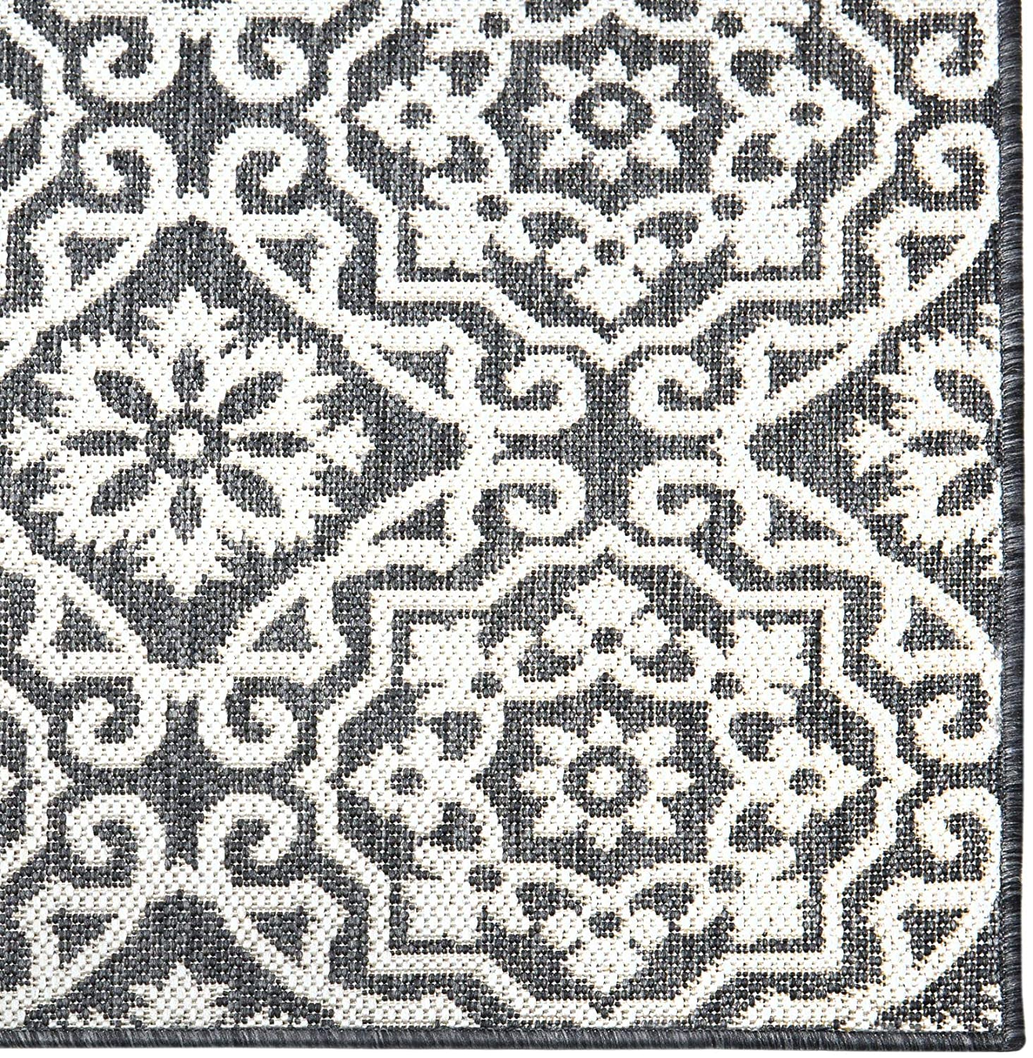 - TEXTURED & DURABLE: Crafted from polypropylene yarns, this woven rug is textured with a comfortable feel underfoot for relaxing in your indoor or outdoor space.