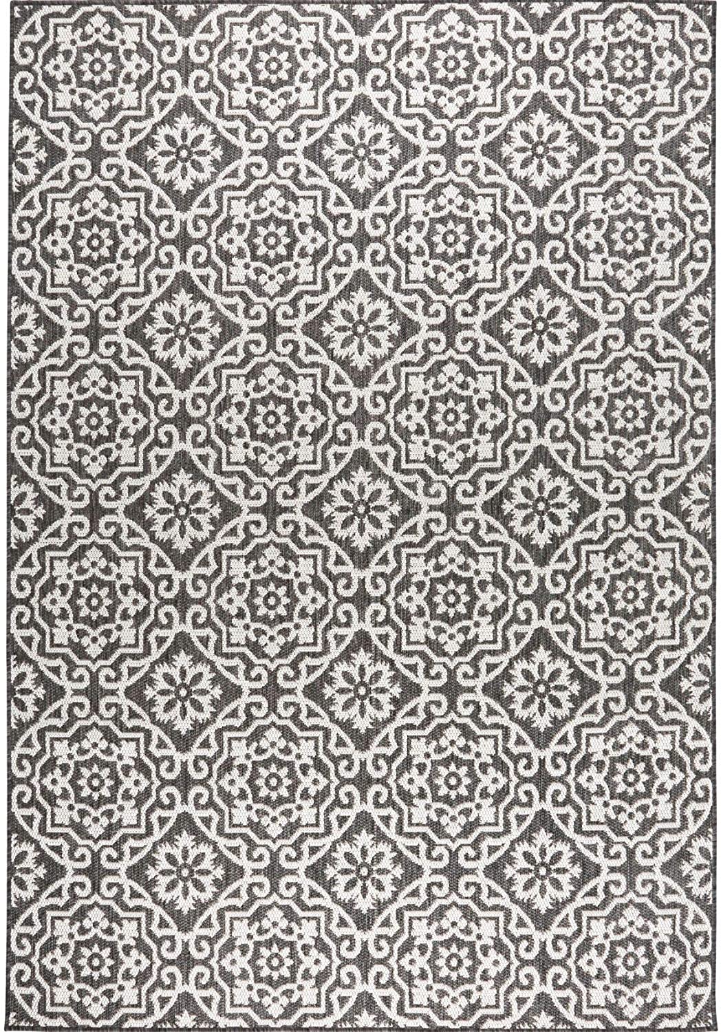 Nicole Miller New York Patio Country Danica Transitional Geometric Indoor/Outdoor Area Rug, Black/Grey, 3’11″x5’2″