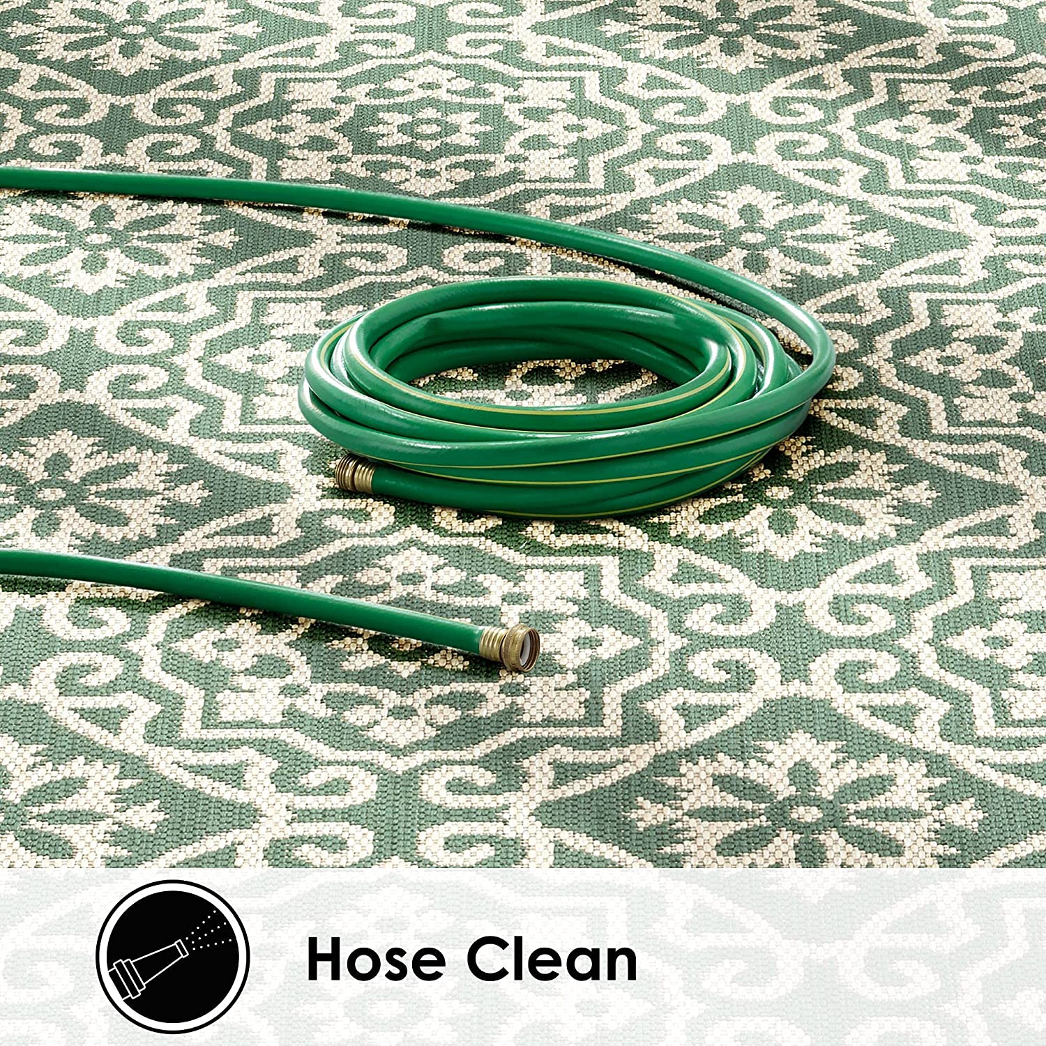 - EASY CARE & MAINTENANCE: The lightweight easy to clean polypropylene is low maintenance and won’t scratch your deck surface. To clean: Blot stains, hose clean, sweep and use a leaf blower. Roll the rug for quick and easy storage throughout the year.