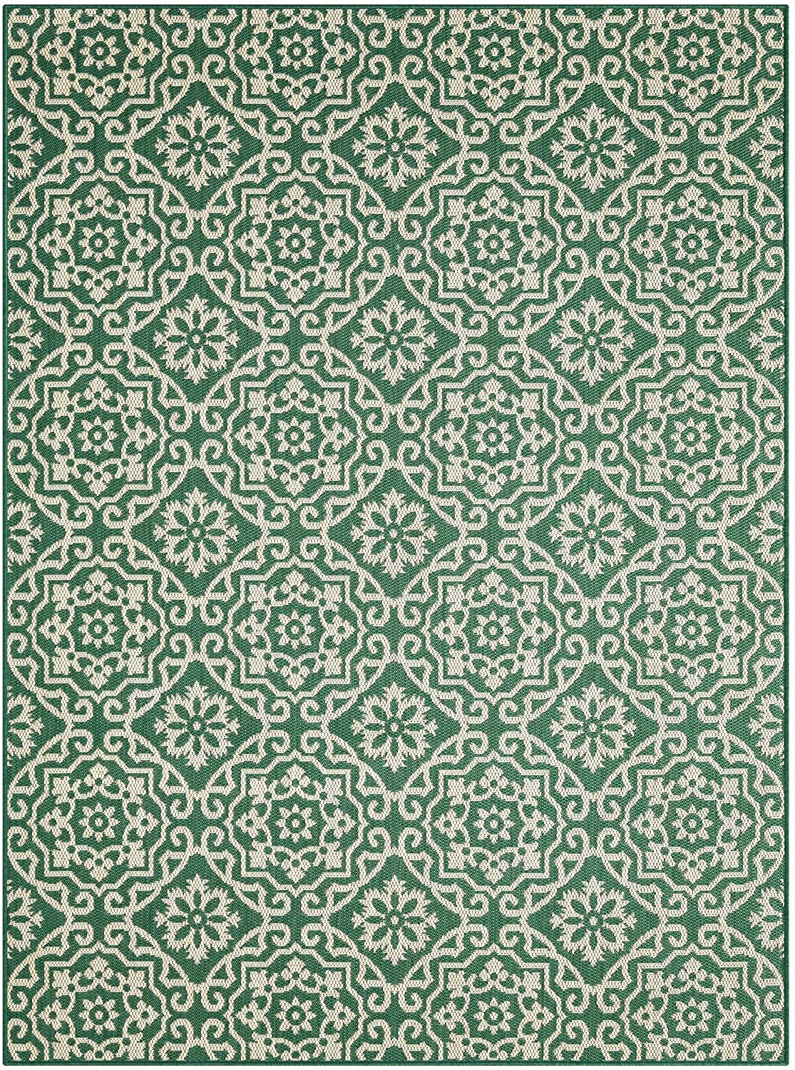 Nicole Miller New York Patio Country Danica Transitional Geometric Indoor/Outdoor Area Rug, Green/Beige, 5’2″x7’2″
