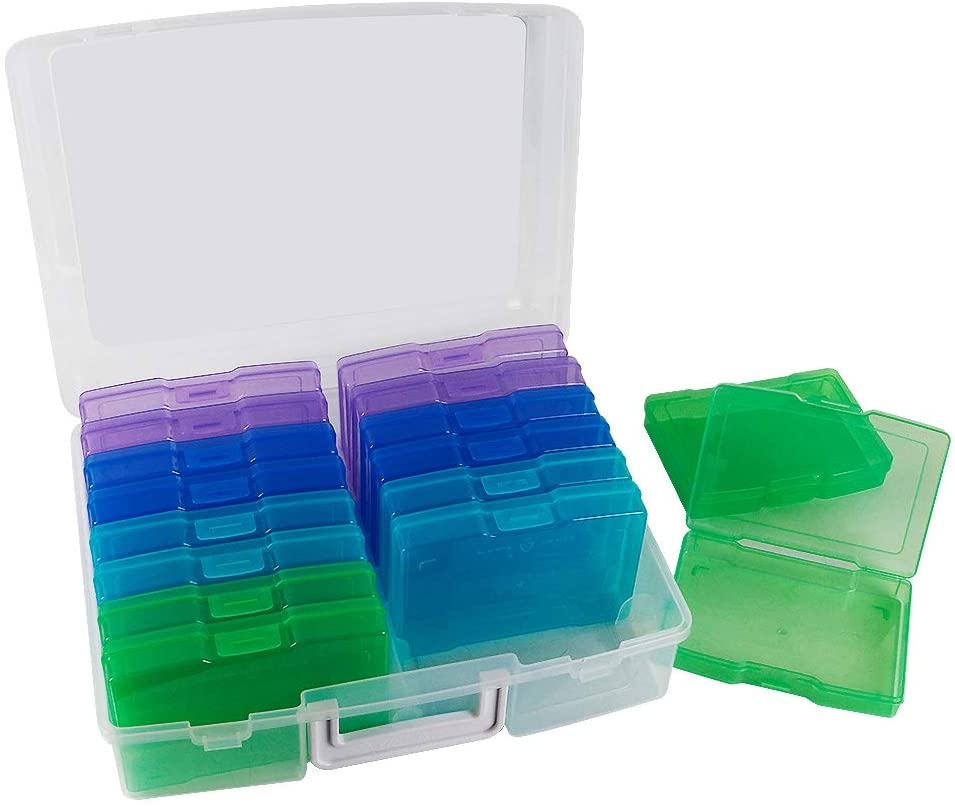 novelinks Transparent 4″ x 6″ Photo Storage Boxes – 16 Inner Photo Organizer Cases Photo Keeper Picture Storage Containers Box for Photos (Cool-Colored)