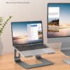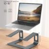 - 【Sturdy & Protective Design】 Made with premium 5mm aluminum alloy this laptop stand is study and is able to support laptop weighing up to 22 lbs (10kg) and with the large rubber pads on the surface it will hold it steady too. We also have pads on the bottom to prevent it from sliding and protecting your laptop from any unwanted harm.