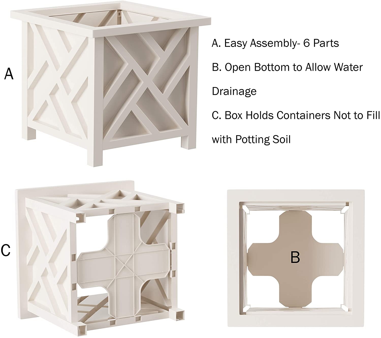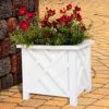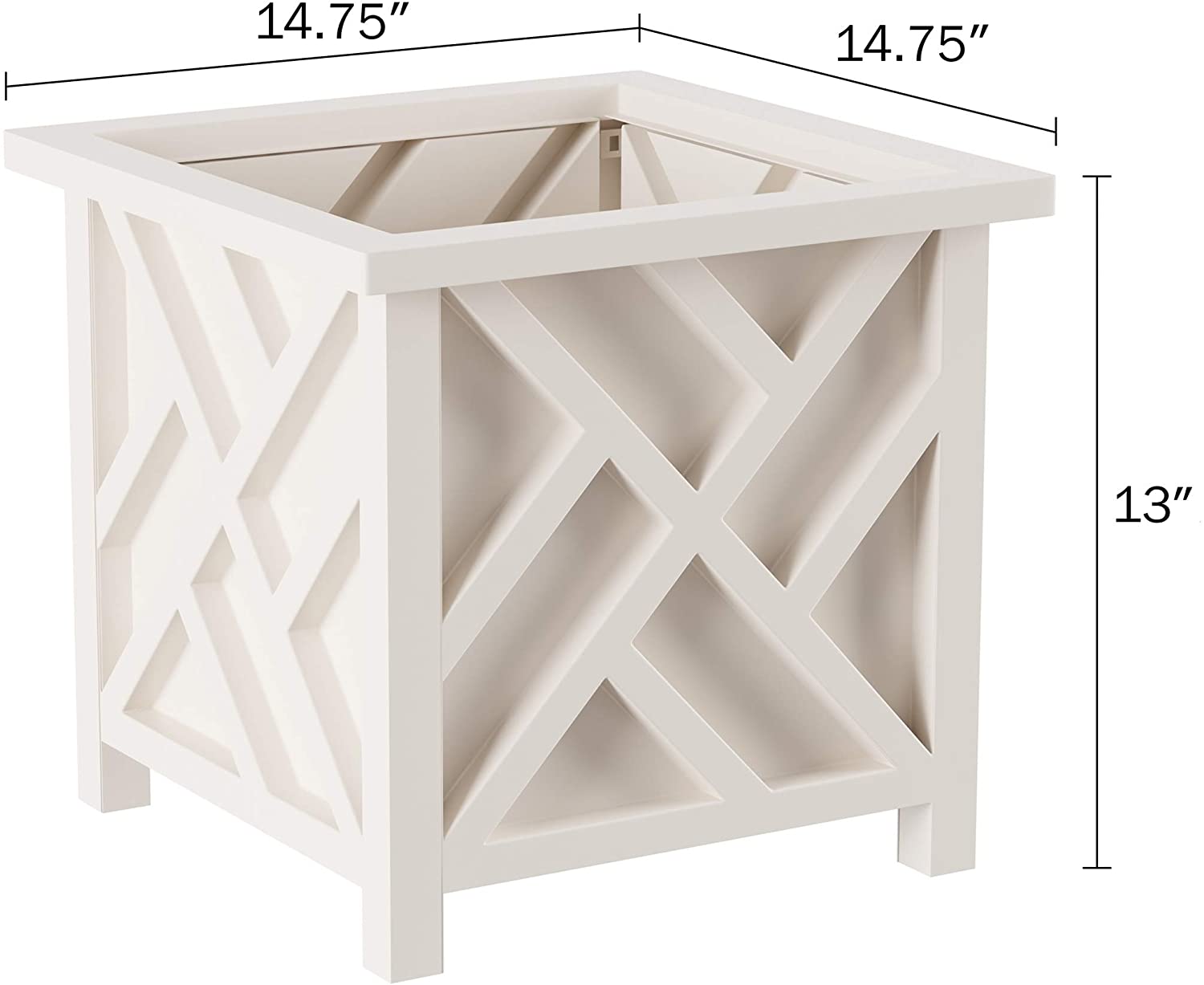 Planter Box – Decorative Outdoor Garden Box for Potted Plants or Flowers – Square Lattice Design – Front Porch and Patio Décor By Pure Garden (White)