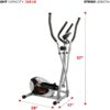 RESISTANCE: Easily adjust the intensity of your workout with the twist of the precise micro-controller equipped with 8 levels of magnetic resistance. DIGITAL MONITOR WITH PULSE: Follow along with your workout progress on the digital monitor that displays your time, speed, distance, calories, and pulse. EASY SETUP: Avoid the hassle of overly complicated setups. This convenient elliptical cross trainer has been partially preassembled. STABILIZER: Achieve smooth and even movement by leveling your elliptical bike with the onboard stabilizers. COMPACT: This compact machine is ideal for people looking to achieve an incredible workout, but don’t have much space to work with.