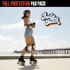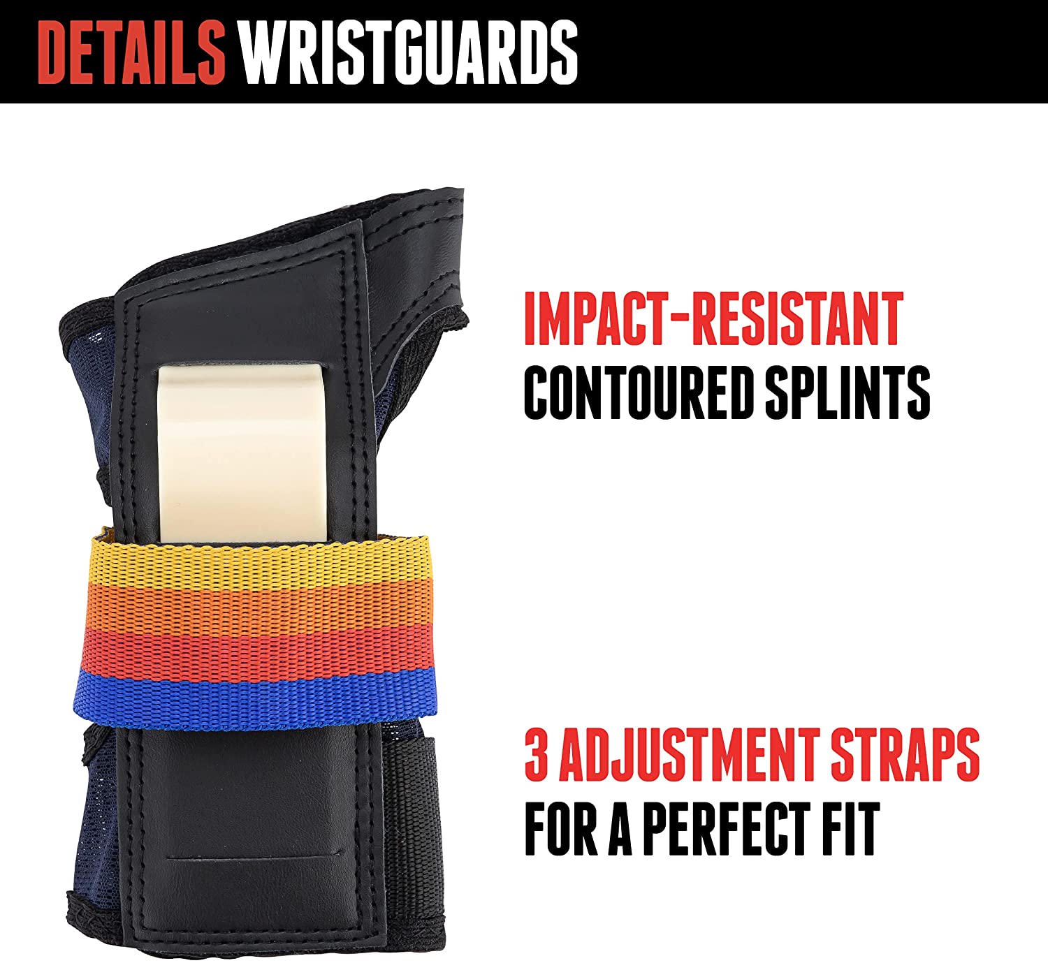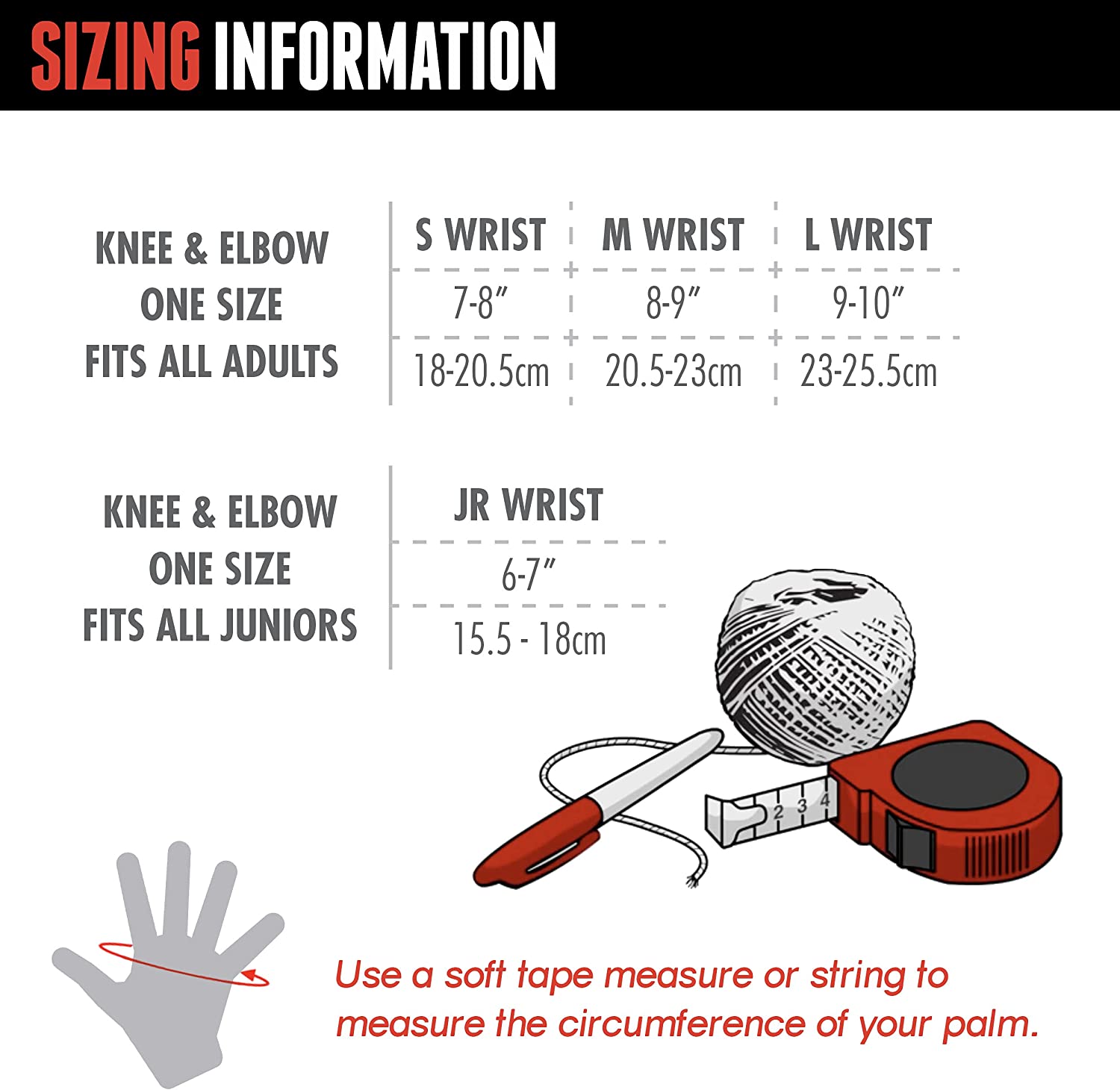 About this item Convenient protective pad set includes one pair each of knee saver knee pads, elbow saver elbow pads, and wrist saver wrist guards for skate, bike, and roller derby Knee pads and elbow pads are made of high grade durable fabrics, with EVA foam padding and polycarbonate full-coverage caps for superior protection that won’t restrict movement Wrist guards offer rigid support and protection with high-density, impact-resistant molded ABS splints and 4-way stretch nylon mesh for a snug fit All pads feature an easy on-and-off sleeveless design and wide, reinforced elastic straps With adjustable hook and loop closures that ensure a secure fit Kneesaver and Elbowsaver: JR one size fits most kids ages 5-8, SM/M/LG one size fits most adults. For a perfect Wristsaver fit, measure hand circumference at knuckles: Junior fits 6-7 in, Small fits 7-8 in, Medium fits 8-9 in, and Large fits 9-10 in