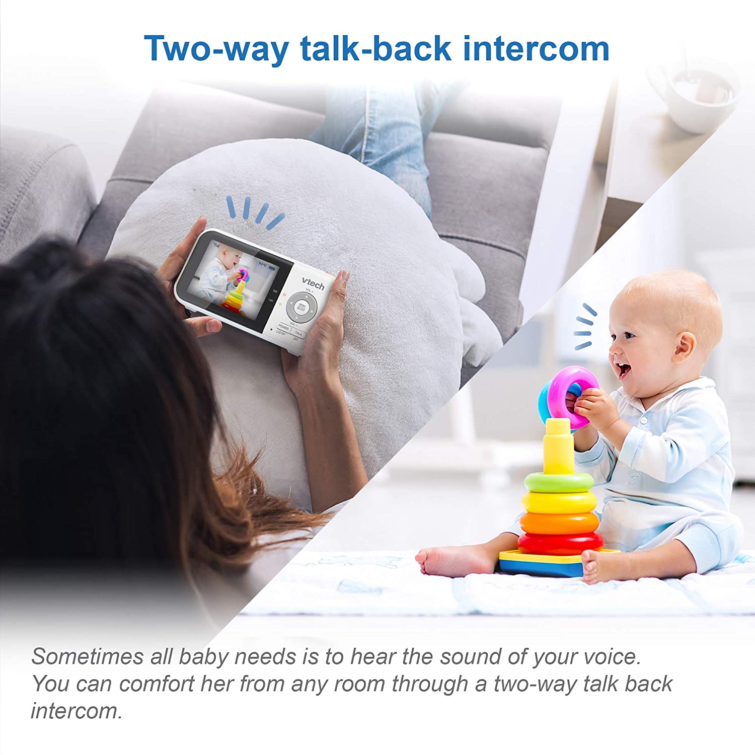 VTech VM819 Video Baby Monitor with 19Hour Battery Life 1000ft Long Range Auto Night Vision 2.8” Screen 2Way Audio Talk Temperature Sensor Power Saving Mode and Lullabies, White